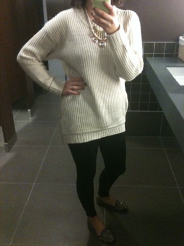 Girl!! This outfit is gorgeous:))))!!!!! Love the sweater with the leggings, loafers, and beautiful necklace!!